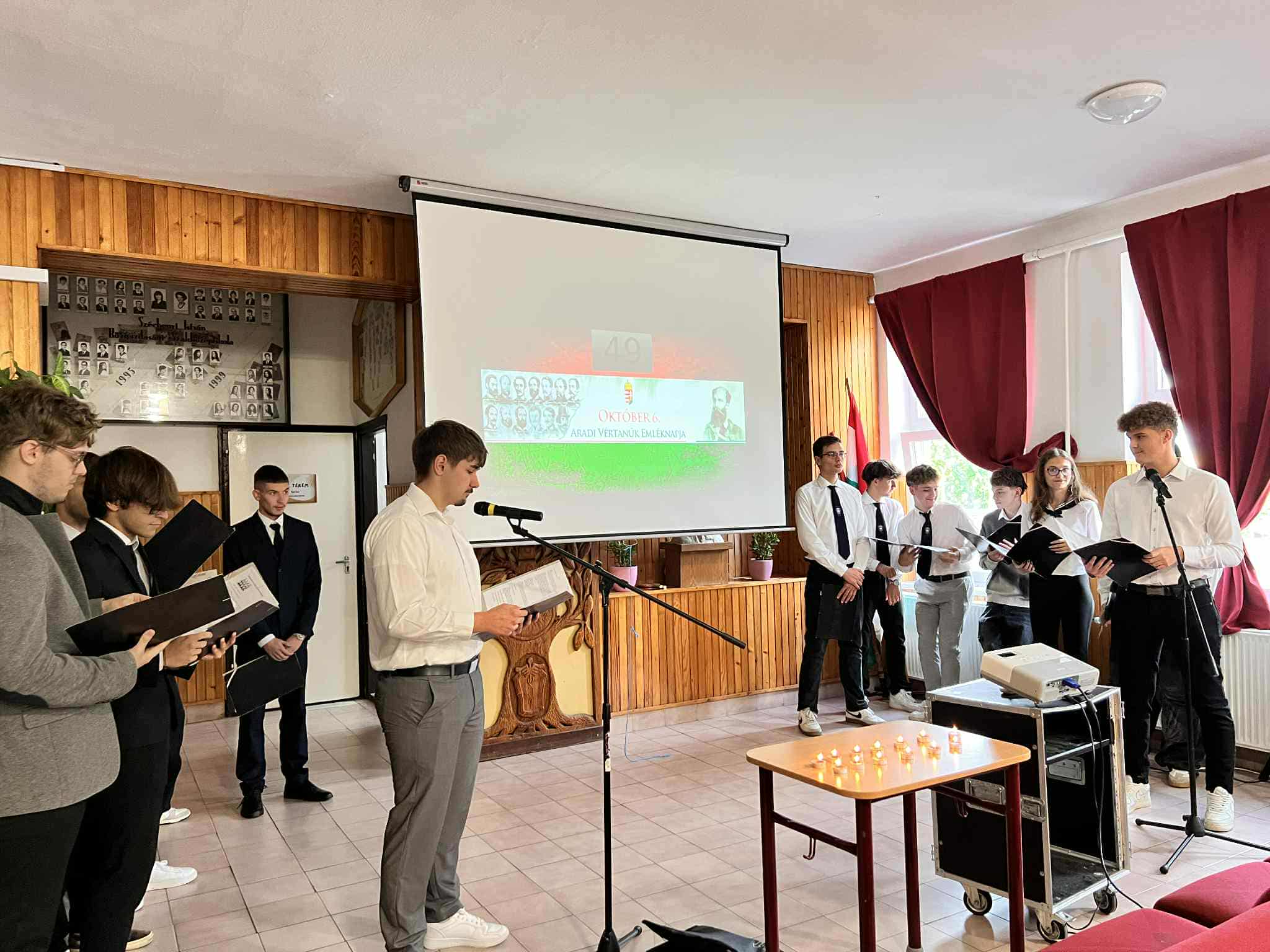 Köszönjük a szereplő diákoknak és felkészítő tanáraiknak a színvonalas, őszinte előadást, amely méltón állított emléket október 6-a hőseinek.
