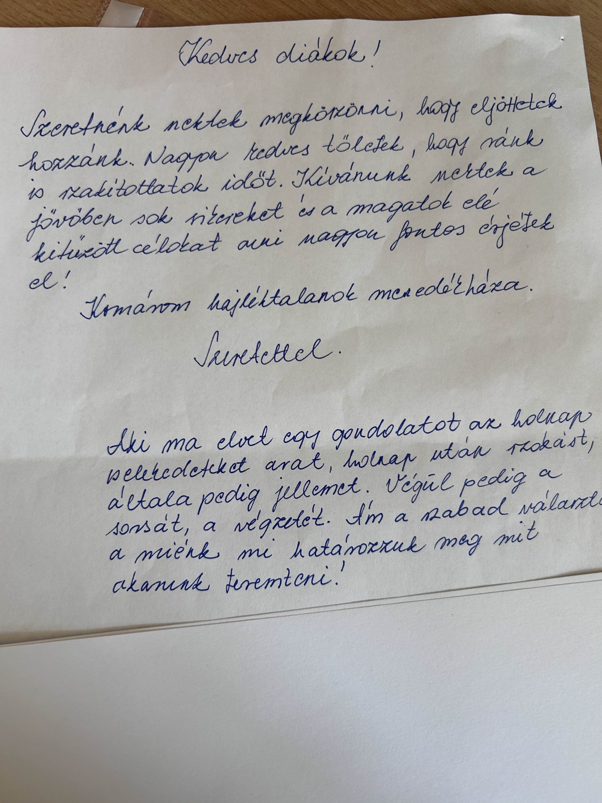 Köszönjük a Komáromi hajléktalanszálló meghívását és vendégszeretetét!