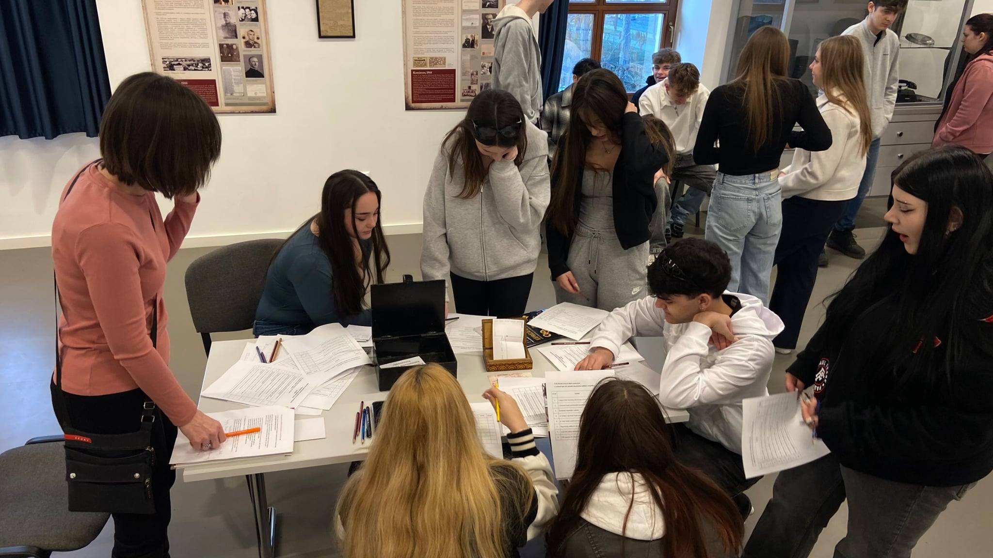 A tanulók ügyesen és fegyelmezetten dolgoztak, nagy érdeklődéssel fordultak a kiállított tárgyak felé. Külön örömöt jelentett számukra, hogy a tárlaton iskolánk ereklyéi is helyet kaptak.