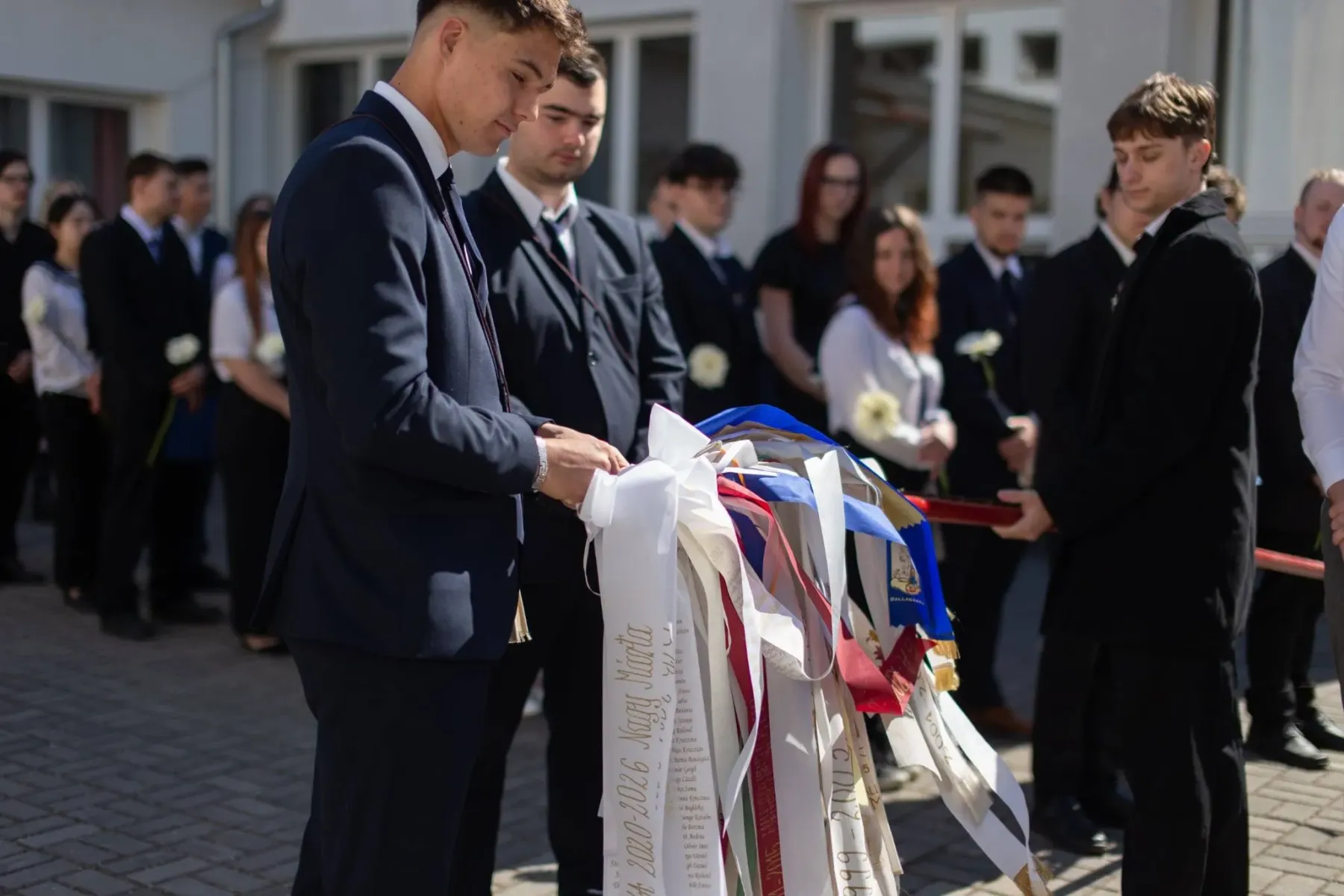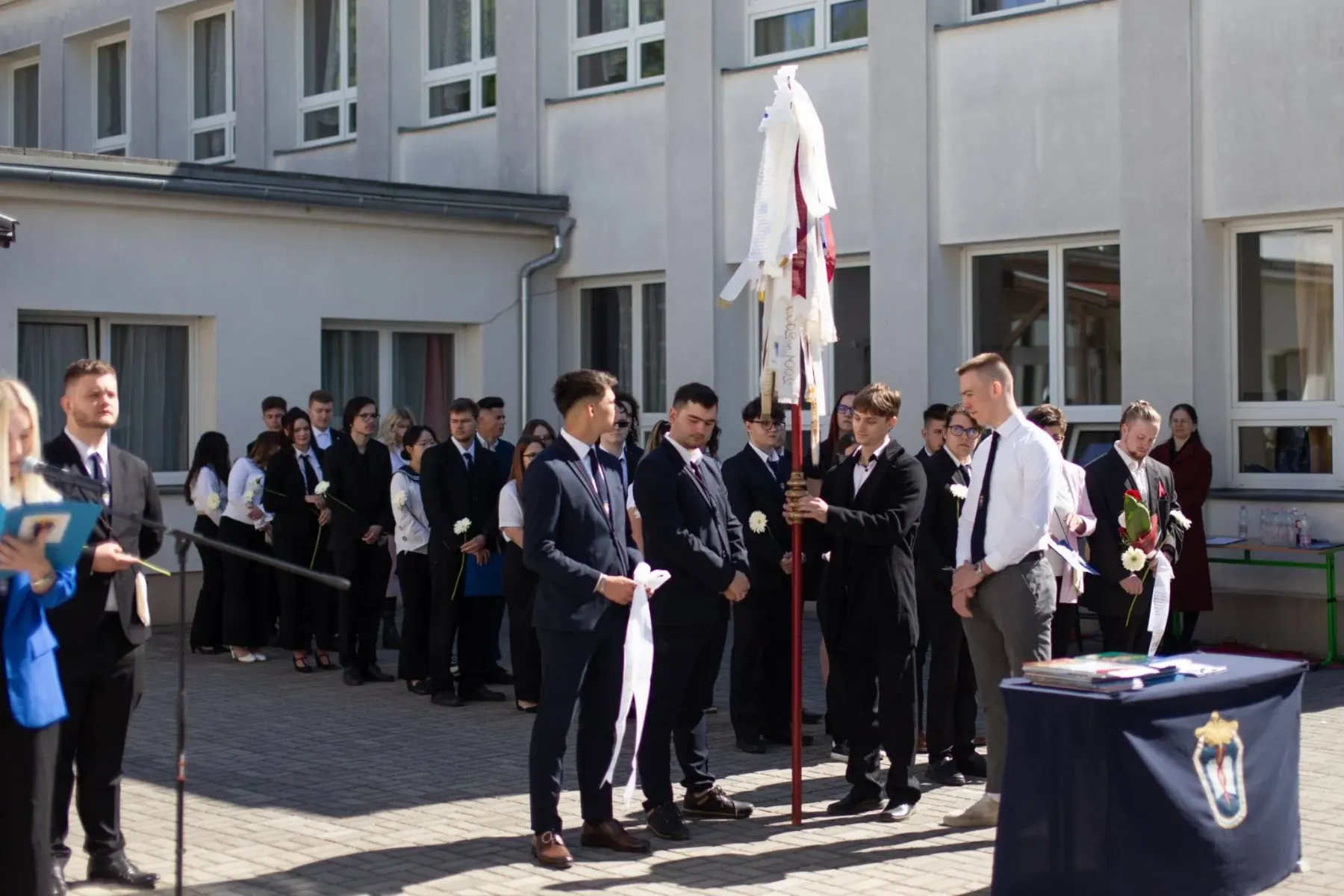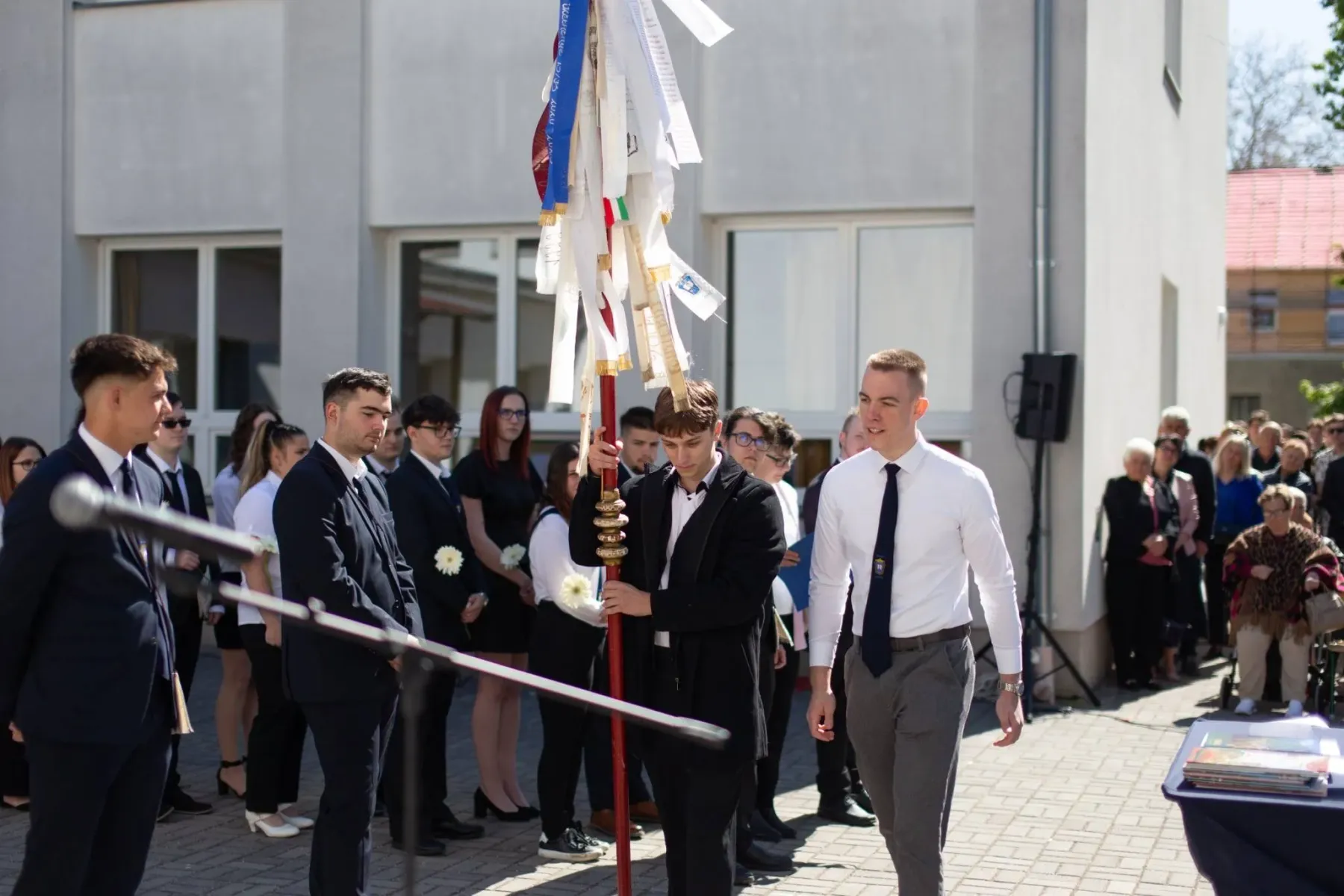 A hagyományokhoz híven sor került a zászló átadására is: a végzősök részéről Sipos-Szabó Dénes (13. A) és Kurica István (13. B) adták át az iskola zászlaját az alsóbb éveseknek, akik közül Juhász Pétzer (12. A) és Fábián Balázs (12. B) vették azt át, ezzel is jelképezve a közösség folytonosságát.